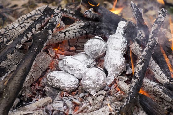 • הדליקו מדורה וחכו כי האש תפחת מעט וגחלים רבים יהיו בתחתית, הכניסו את תפוחי האדמה בין הגחלים והמתינו בין 40-60 דקות.